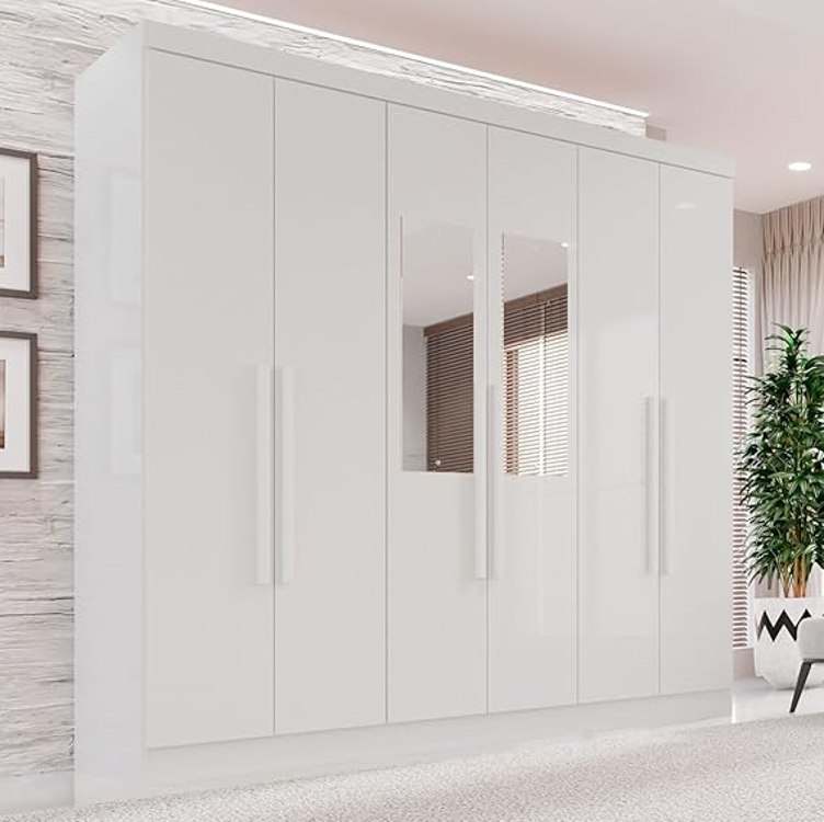 Guarda-roupa Casal com Espelho 6 Portas 2 Gavetas França Branco